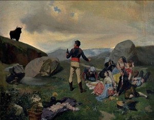 La silueta recortada de un toro sobre una loma es una imagen presente en el imaginario colectivo español, creación original del pintor Enrique Mélida, plasmada en su cuadro «Se aguó la fiesta».