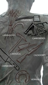 Recoge los diferentes oficios que se practicaron, con prestigio, en Mecerreyes . Como recoge su himno, fueron muchos y variados: carreteros, carboneros, romaneros, etc. Si se observan con detenimiento los relieves, se ven identificados.