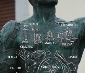 En el pecho, además de algunos oficios están grabadas las tradiciones y costumbres más populares como “El Gallo de carnaval” y las “Marzas”, acompañadas por el crucero y la iglesia de San Martín, símbolo de las creencias fundamentales para los vecinos; ella ha recibido a los nuevos «guiletos» que llegaban a su vecindad mediante el bautismo, matrimonios y actividades religiosas y, muy importante, ha despedido y despide, a los que nos van dejando. Una iglesia donde las alegrías y tristezas se han mezclado para sus gentes.