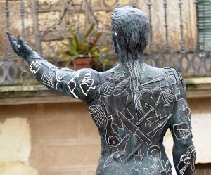 Ángel, a través de su escultura, nos transmite información y mensajes sobre la existencia de la vida e historia guileta. No todos los mensajes son inmediatamente comprensibles y requieren, por tanto, de algunas ayudas para la interpretación de los mismos. En este caso, las ayudas nos las proporciona el mismo escultor.